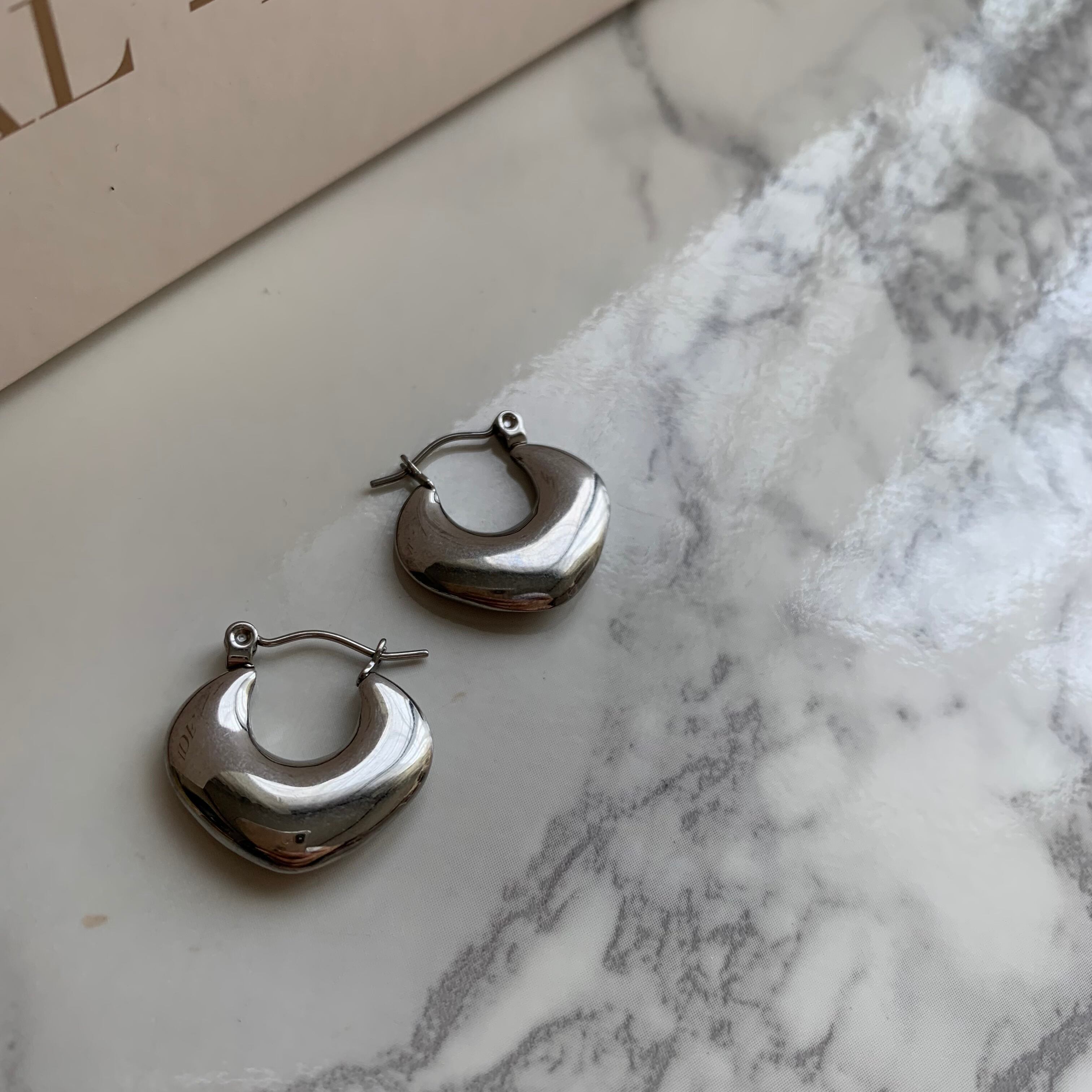サージカルステンレスのぷっくりとした菱形ピアスです。