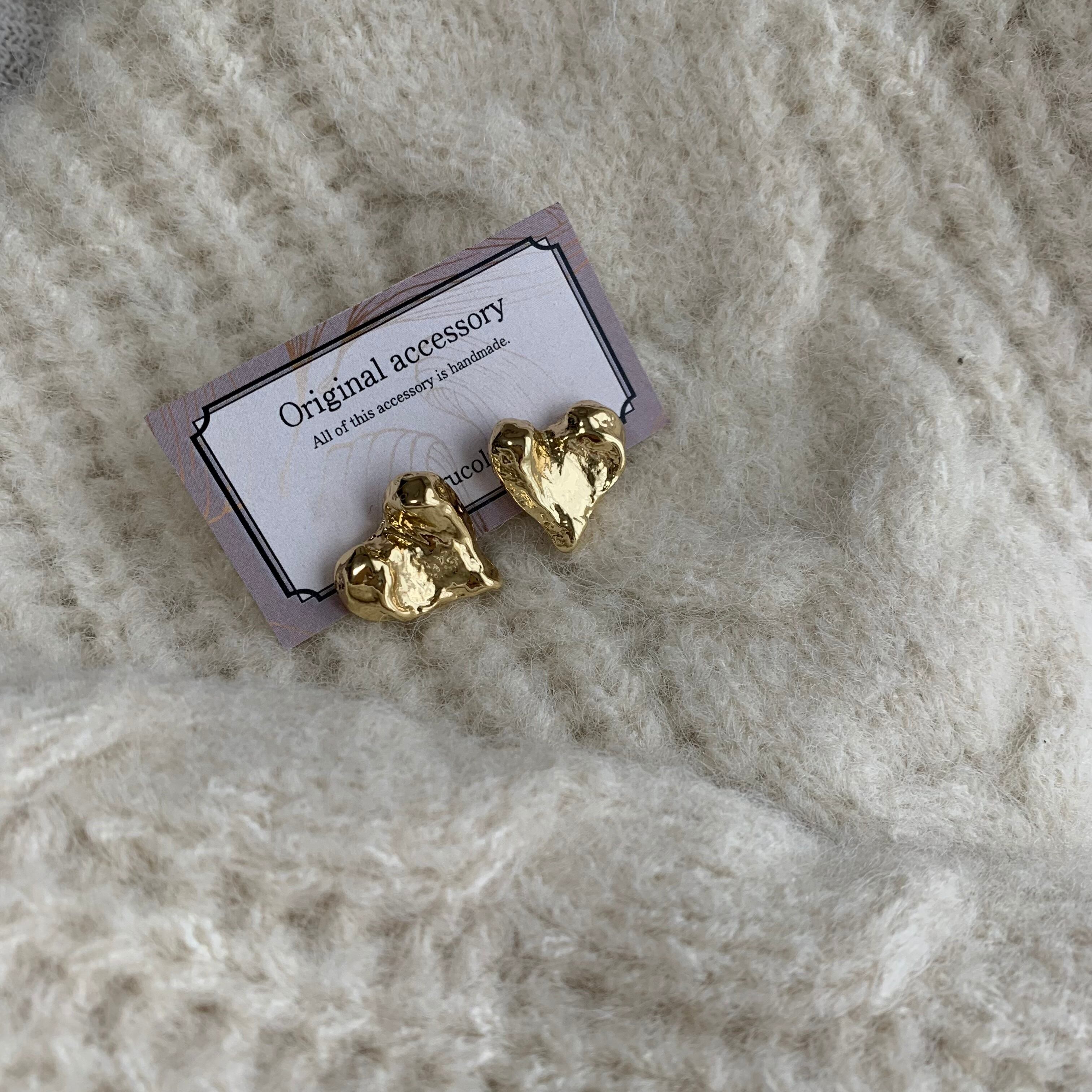 でこぼこギザギザ不規則な形が可愛いハートピアス。